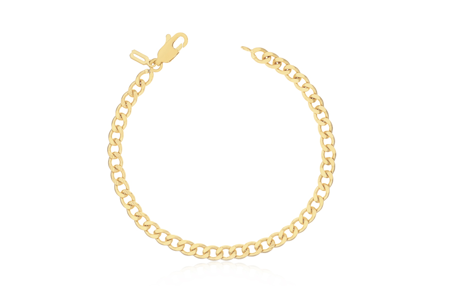 BRACELETE BANHADO EM OURO, OVAL 4mm LARGURA E 6,50cm COMPRIMENTO, COM FECHO, LISO OU ACETINADO