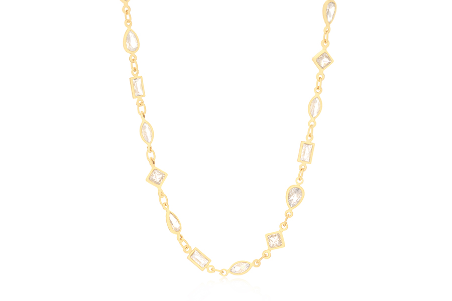 GARGANTILHA BANHADA EM OURO, ELO VENEZIANA 0,80mm, 42cm COMPRIMENTO E ZIRCONIA GOTA 10X7mm, PARA QUALQUER COR DE PEDRA