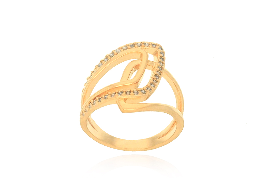 ANEL BANHADO EM OURO, COM ZIRCÔNIAS E DETALHE LISO
