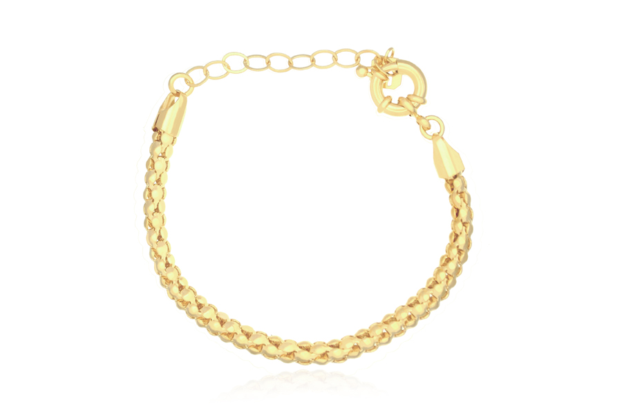 PULSEIRA INFANTIL BANHADA EM OURO, CORRENTE ELO 4mm DE LARGURA, FECHO TRAVA E PESO 3,40g