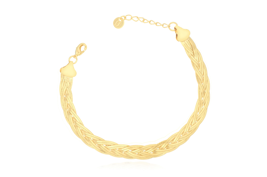 BRACELETE BANHADO EM OURO, OVAL 4mm LARGURA E 6,50cm COMPRIMENTO, COM FECHO, LISO OU ACETINADO