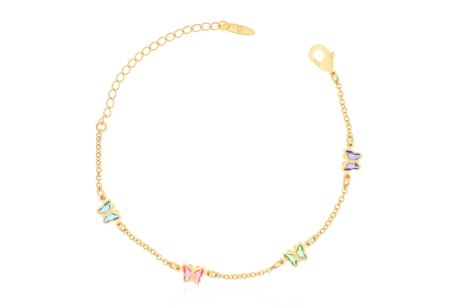 PULSEIRA INFANTIL BANHADA EM OURO, ELO 1,10mm COM BOLINHA, 14cm COMPRIMENTO, PONTO DE LUZ 3,50mm, AMOR DO PAPAI 10mm COM CORAÇÃO