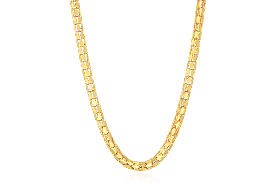 GARGANTILHA BANHADA EM OURO, TRIPLA, ELO 11 EM 1, 60mm LARGURA, 45cm COMPRIMENTO E EXTENSOR 5cm COMPRIMENTO