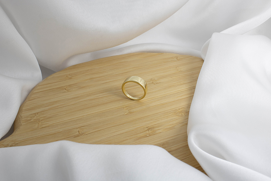 ANEL BANHADO EM OURO, COROA 10mm LARGURA