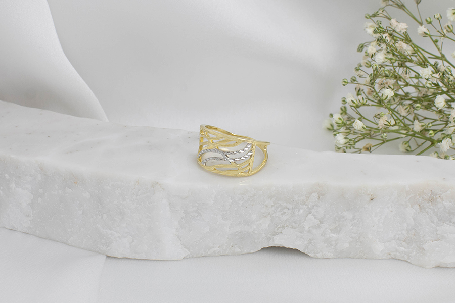 ANEL EM PRATA, FALANGE, 2 FOLHAS