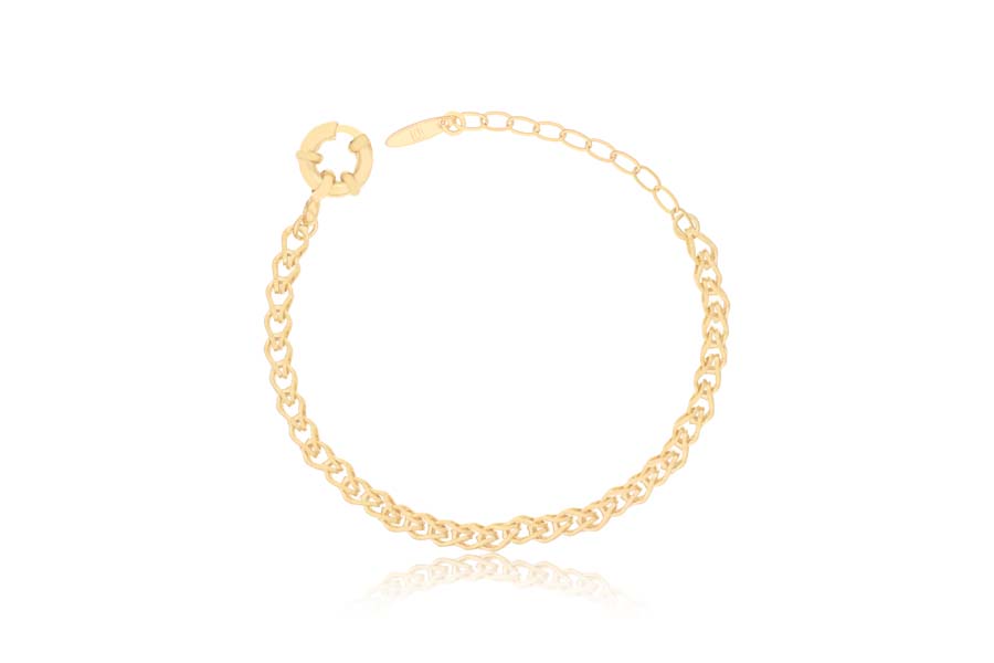 PULSEIRA BANHADA EM OURO, ELO 2,30mm LARGURA, 16cm COMPRIMENTO, EXTENSOR 5cm COMPRIMENTO E CORAÇÃO 7mm LARGURA, PARA QUALQUER COR