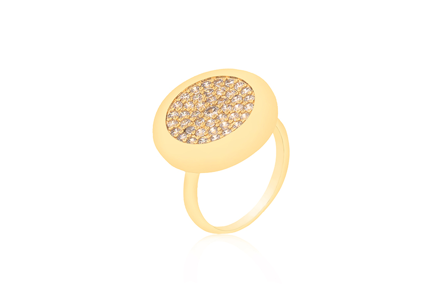 ANEL BANHADO EM OURO, ZIRCÔNIA OVAL 6X4mm