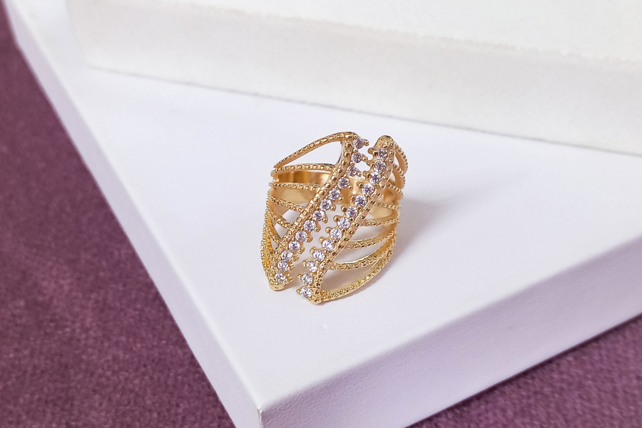 ANEL BANHADO EM OURO, COM 30 ZIRCÔNIAS