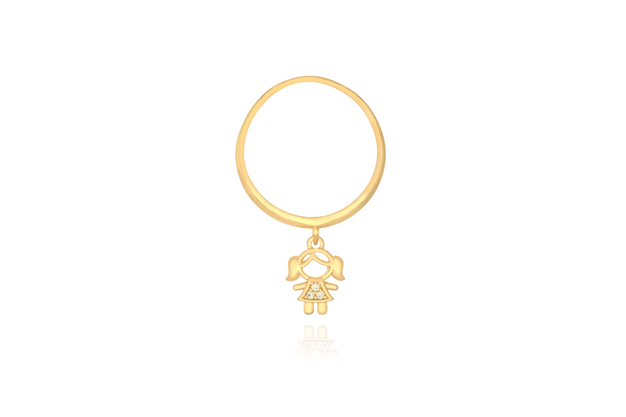 ANEL BANHADO EM OURO, COM ZIRCÔNIAS E DETALHE LISO