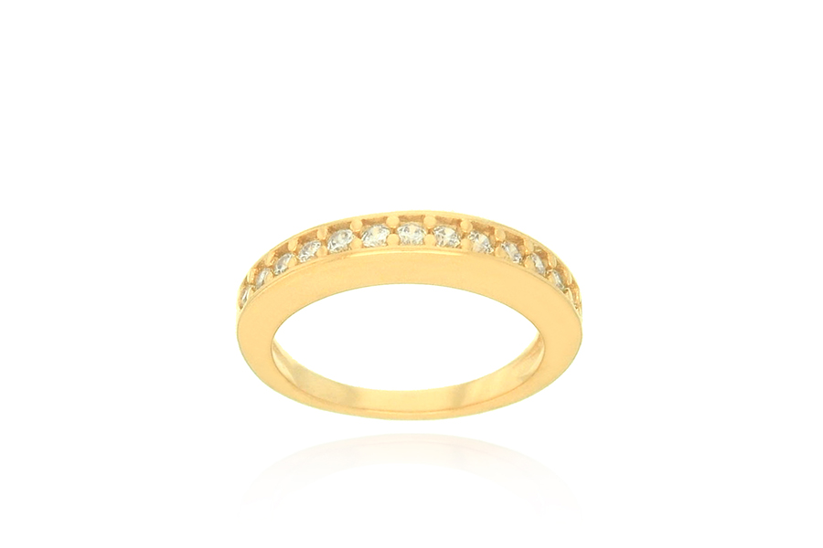 ANEL BANHADO EM OURO, COM 31 ZIRCÔNIAS NAVETE E REDONDA