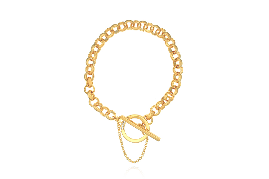 PULSEIRA INFANTIL BANHADA EM OURO, CORRENTE ELO 4mm DE LARGURA, FECHO TRAVA E PESO 3,20g