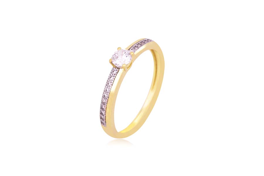 ANEL BANHADO EM OURO, ZIRCÔNIAS 3 E 2mm