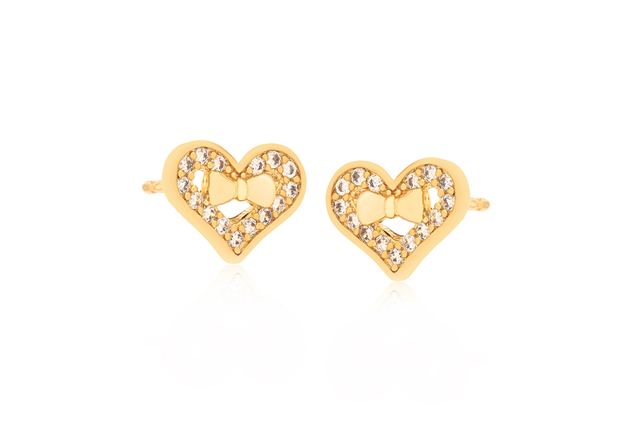 BRINCO BANHADO EM OURO, CORAÇÃO E PONTO DE LUZ 6mm ALTURA